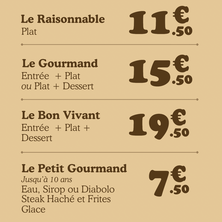 Sans oublier notre Menu Enfant pour les petits gourmands !